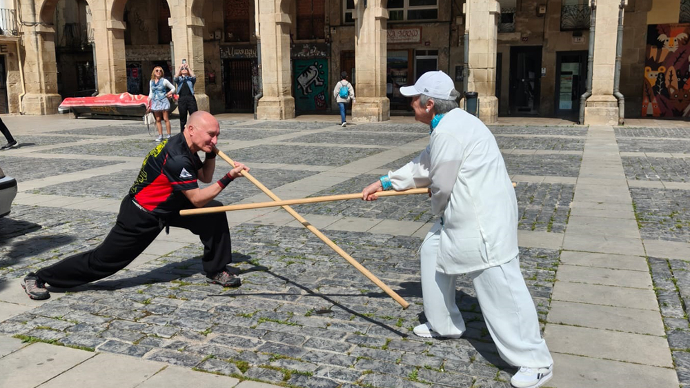 Esta mañana la plaza es un espacio de encuentro donde la tradición, la salud y la cultura se unen a través de exhibiciones y talleres prácticos. Una iniciativa que acerca a los asistentes a una disciplina milenaria mediante demostraciones y actividades aptas para todos los públicos.